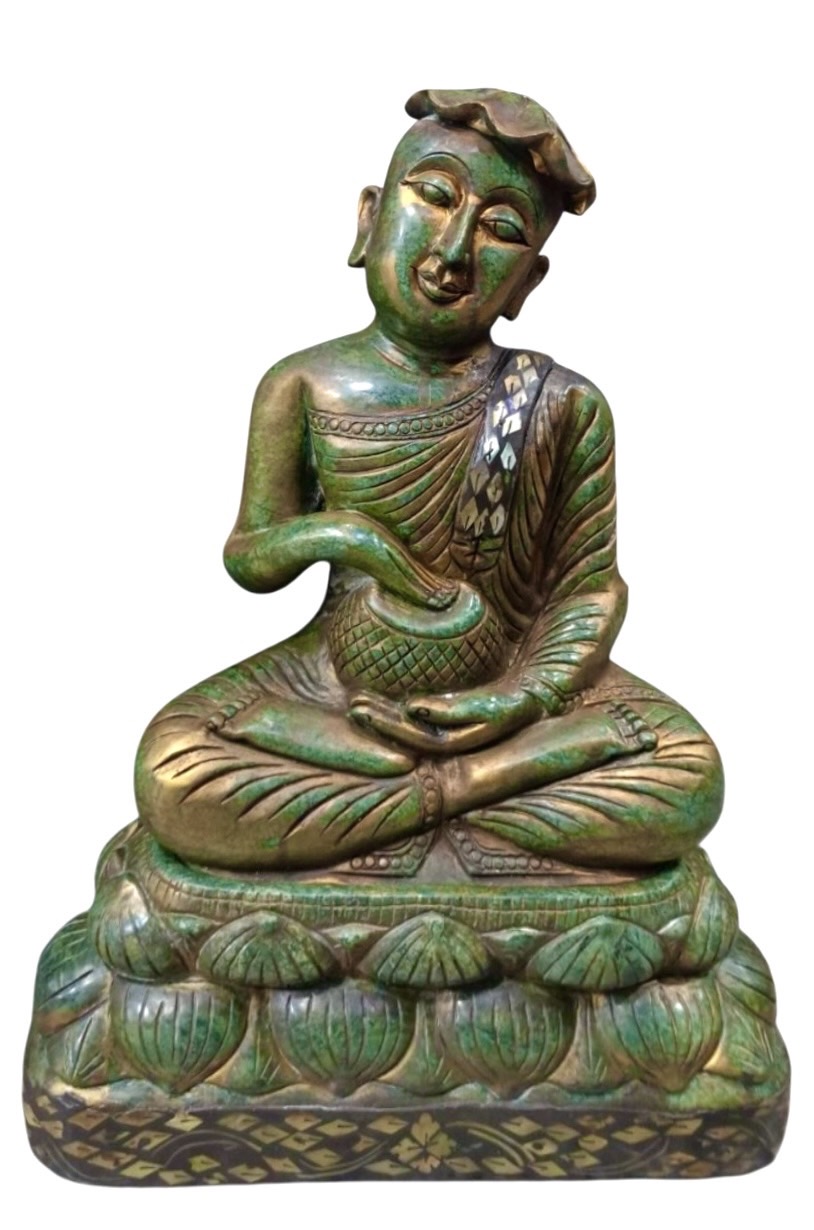 พระอุปคุตจกบาตร เนื้อหินหยกสีเขียว ฐานถอดได้ ใต้ฐานประดับ ลายมุก จปร 2411 หน้าตัก 9 นิ้ว